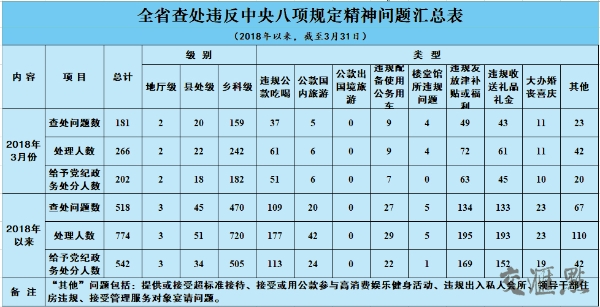 2018年3月全省查处违反中央八项…